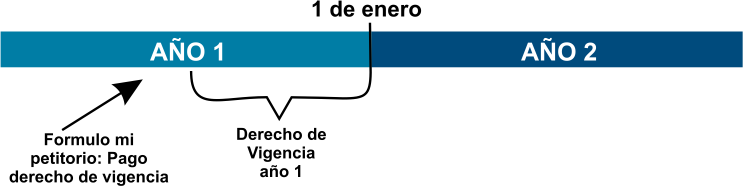 Asimismo, la obligación de pagar el derecho de vigencia es anual, y nace desde que usted formula su petitorio de concesión minera, ejemplo: