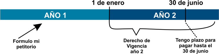 AÑO 3 y SIGUIENTES : Al igual que para el segundo año, debe pagarlo partir primer día hábil del mes de enero al 30 de junio de ese año. La misma regla se aplica para los años siguientes.